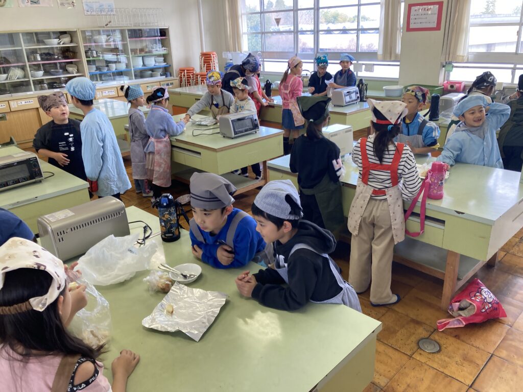 2年生:普段なかなかできないクッキング!1組はシュガーラスク。固いバターを練って柔らかくしたり、砂糖を適量振りかけるなど、手先をたくさん使いました。