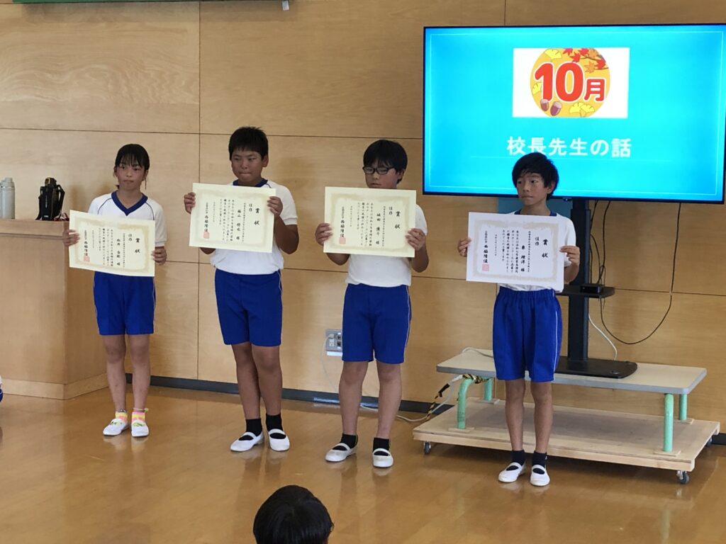 絵画のコンクールなどで受賞した児童へ賞状を手渡しました。