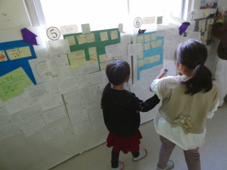 教室には、図工「どろどろカッチン」で製作途中の作品が並べてありました。完成品が展示されるのが楽しみです。
