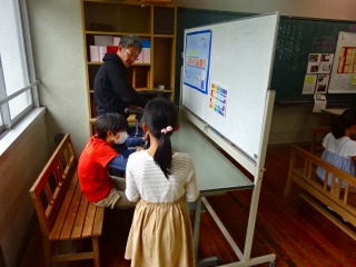 11月25日、峰山学園4小学校の6年児童が峰山中学校で授業を体験しました。国語、数学、社会、理科、英語の5教科に分かれ、中学校の先生による授業を受けました。どの授業も少人数で課題に取り組む時間が設定されており、他校の児童と協力して学習にとりくむ姿が見られました。体験を通して、4月から始まる中学校生活がどんどん楽しみになってきているのではないでしょうか。