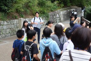 また、音羽の滝では希望者が3本に分かれた筧から水を飲みました。