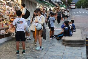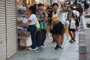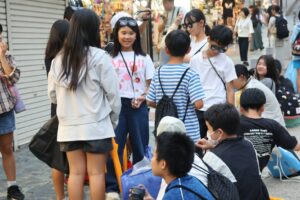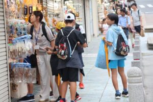 三条通りに到着した子どもたちはにこにこ笑顔でお買い物♪