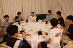 明日のUSJに備えてしっかりとエネルギーを充填する子どもたちです♪