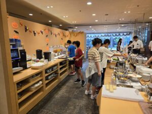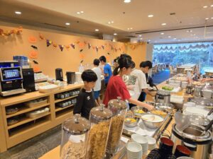 修学旅行⑨朝食バイキング 教育活動の様子(峰小日記) Twitter Facebook はてブ Pocket LINE コピー 2025.09.26 みんな元気に起きてきました♪ 朝はバイキングで思い思いの食材をとっていきます。 この後はいよいよお待ちかねのUSJ! 予報では少し暑くなりそうですので、 しっかりと朝食を摂って体調も整えて 今日も元気でいってらっしゃい♪ COUNTER: 197