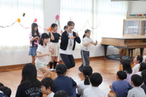 ダンス甲子園 教育活動の様子(峰小日記) Twitter Facebook はてブ Pocket LINE コピー 2025.10.03 児童会のイベント委員会の企画で、「ダンス甲子園」が開催されました。3チームがエントリーし、それぞれ見事なダンスを披露しました。見に来てくれていたお客さん達(友達・先生)から、会場いっぱいの拍手をもらいました。 COUNTER: 110