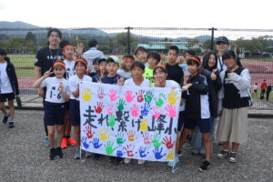 10月15日、峰山はごろも競技場にて、京丹後市小学校駅伝競走大会が行われました。6人の選手は、持てる力を発揮して最後までタスキをつなぎました。また、控え選手については、タイムトライアルレースに参加して最後まで走り切りました。多くのご声援、ありがとうございました。