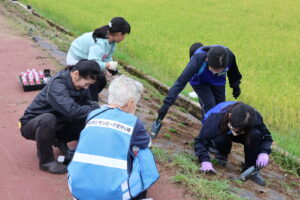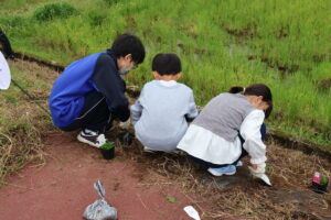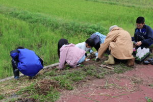 本日、3年生は中学生と一緒に学園のクリーンキャンペーンを行いました。地域のボランティアの方々も一緒に、ゆめサンサンロードの花いっぱい運動に取り組みました。雑草がとても根深く生えていて大変でしたが、中学生に手伝ってもらたったり、声をかけてもらったりしながら、頑張って取り組みました。「また一つ、きれいな所ができて良かったです。」という感想が、3年生からも中学生からも聞かれました。地域のボランティアの皆様、大変ありがとうございました。
