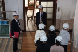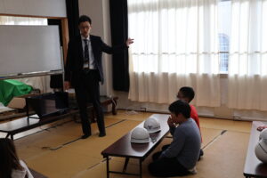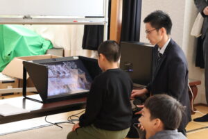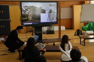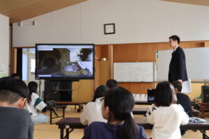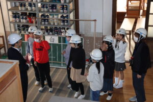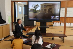教育委員会の文化財保存活用課の方々に来ていただき、4年生、5年生それぞれ、丹後震災や震災記念館について学びました。3Dの映像も見せていただいたり、旧校舎の中を案内していただいたりして、大変貴重な学習の機会となりました。今、デジタル教材などを使って、多様な学び方の可能性も広がっていると感じます。子ども達も、いろいろな分野に、より興味関心が高まるといいなと思います。