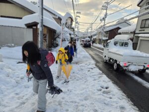 昨日からの大雪により通学路も積雪や除雪の雪がたまっている状況でしたが、子ども達の登校にあたり、歩道の除雪や見守りを早朝よりお世話になり、本当にありがとうございました。おかげさまで、子ども達安全に元気に登校することができました。今後とも、どうぞよろしくお願いいたします。