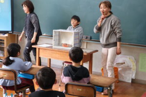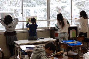 1年生は、食についての学習です。2年生は雪遊びを楽しんだ後、少し休憩で体を暖めていました。