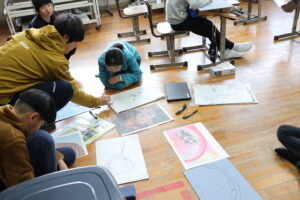 4年生は、版画の作品作りに取り組んでいました。