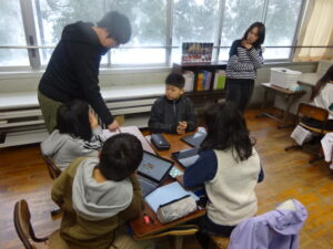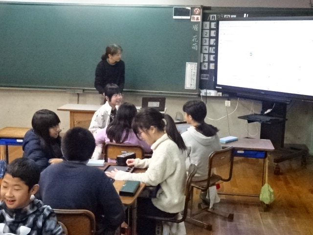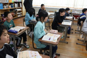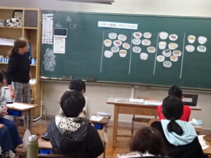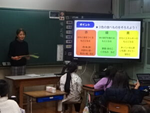 峰山中学校の栄養教諭の先生に来ていただき、今日は4,5,6年生が食に関する学習を行いました。(先週の大雪警報により延期して実施)