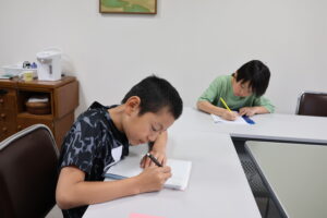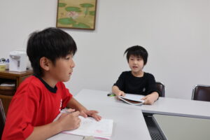 4年生の子ども達が、国語の学習で、「子どもの頃、夢中になっていたこと」を聞くインタビューに来てくれました。事前に学習したことをいかしながら、上手に聞いて熱心にメモをとっていました。