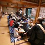 新聞の上に立ってまずは、じゃんけんです。負けると新聞を1度折りたたんでいきます。面積がどんどん小さくなっていくので、どうやって立つかを考えます。