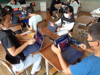 1,2年生が体育の授業でチャレンジ・ランニングで走るコースの確認をしました。グラウンドを出てどこでどっちに曲がるのかを理解するため実際に歩きました。来週は試走をする予定です。自分で目標を立て、その目標達成に向け頑張れるよう指導や支援を行います。