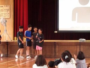 11日は、全校集会で駅伝大会についての説明と選手代表による挨拶があり、全校児童の大きな激励の拍手を受けました。