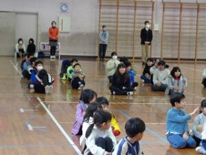 1月25日の全校集会では、給食グループの代表2名が主任調理員さんに全校からの感謝の思いをつづった寄せ書きを渡しました。主任調理員さんからは、これからもおいしい給食を食べてもらえるよう頑張りたいとの思いを伝えていただきました。