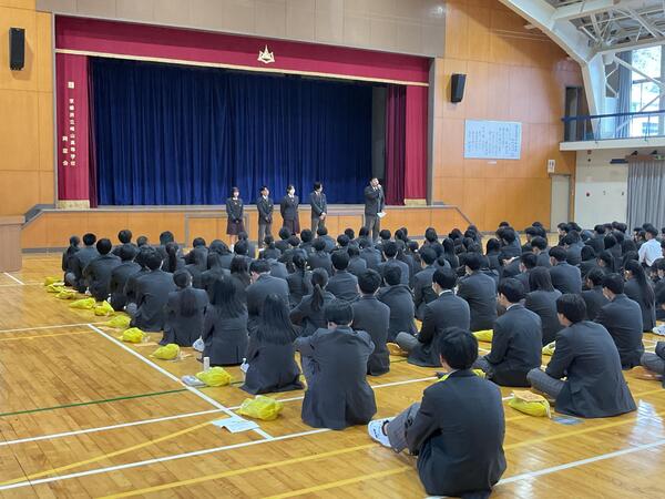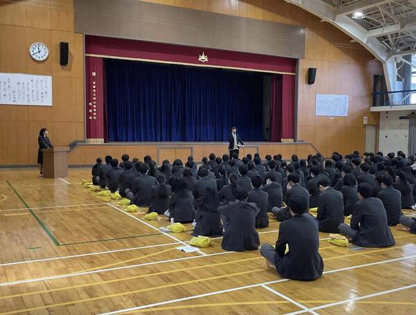 本日、修学旅行に向けた結団式を実施しました。修学旅行委員長からの挨拶を始めとし、明後日からの活動の楽しみ方や注意点を各委員や教員から説明がありました。様々な経験を通し、大きく成長できる修学旅行であることを願います。