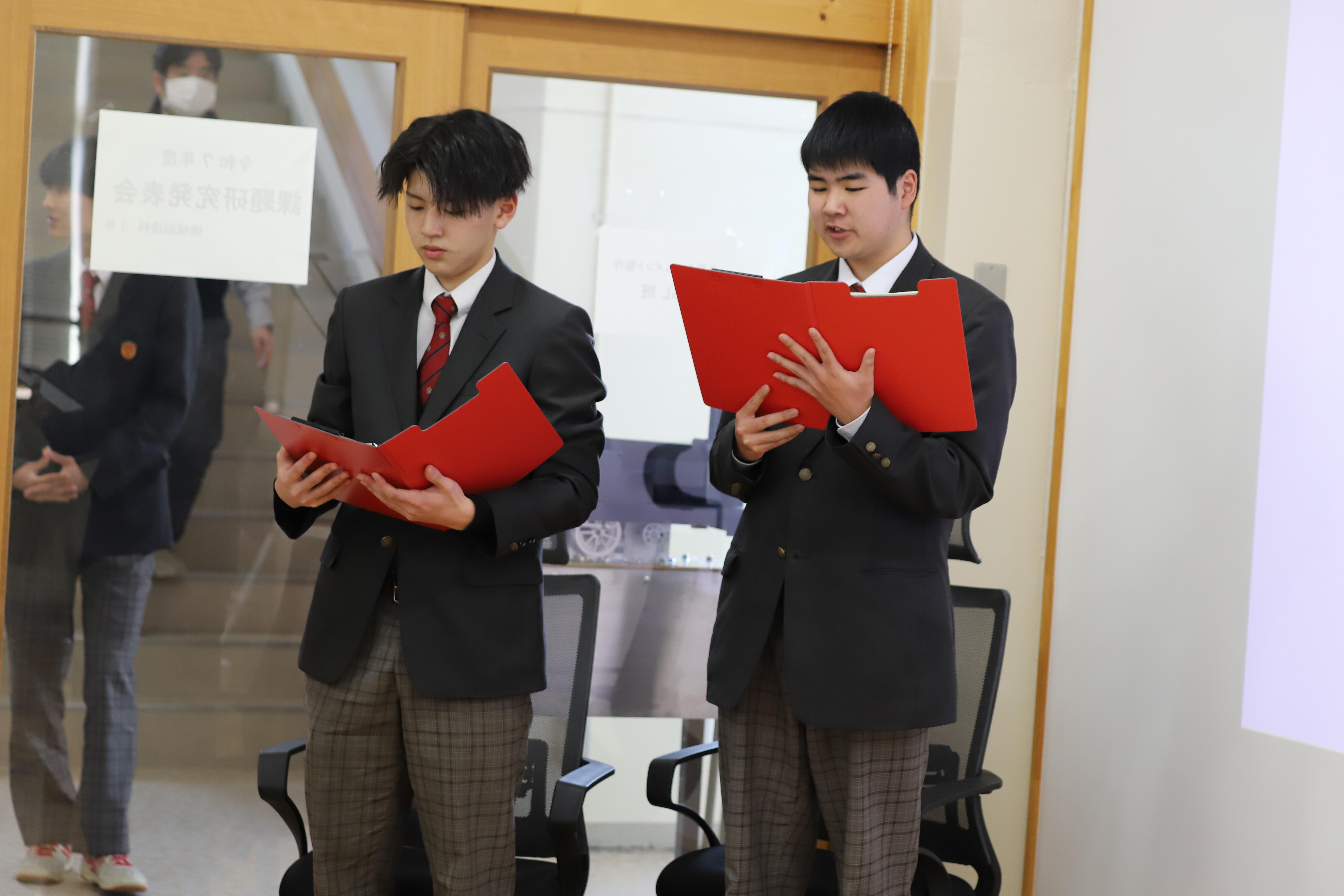 令和8年2月5日木曜日の5,6限目に機械創造科の3年生が課題研究発表会を行いました。今年度は4つのテーマに分かれ、機械創造科で学んできた知識や技術を活かして一年間取り組んだことについて発表しました。
