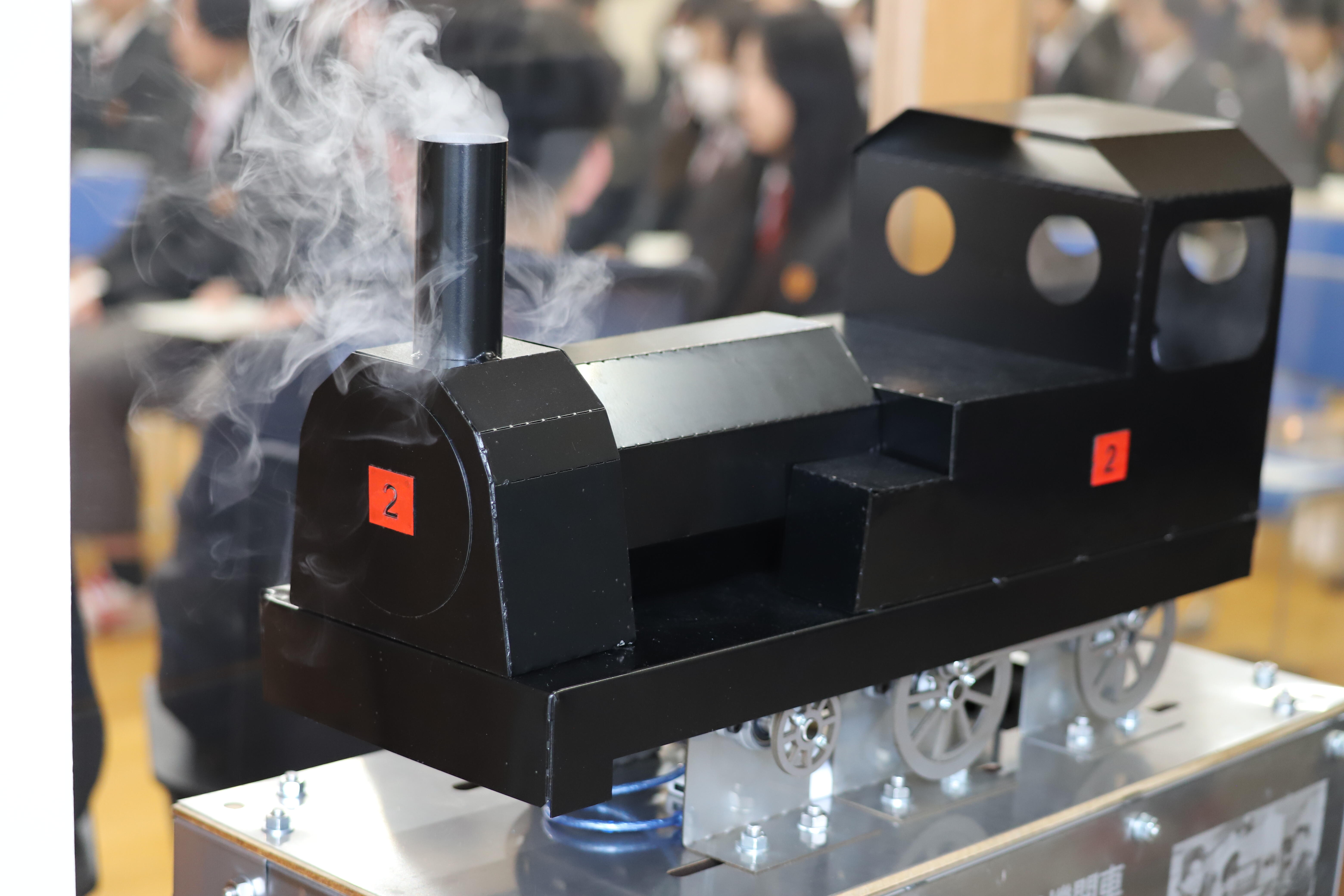 また、「丹後ちりめんを運んでこの地域を支えていた蒸気機関車と、その発展により設置されていた繊維デザイン科などの本校の文化や歴史をつなぐ」というコンセプトのもと、蒸気機関車のモニュメントを製作しました。![]()