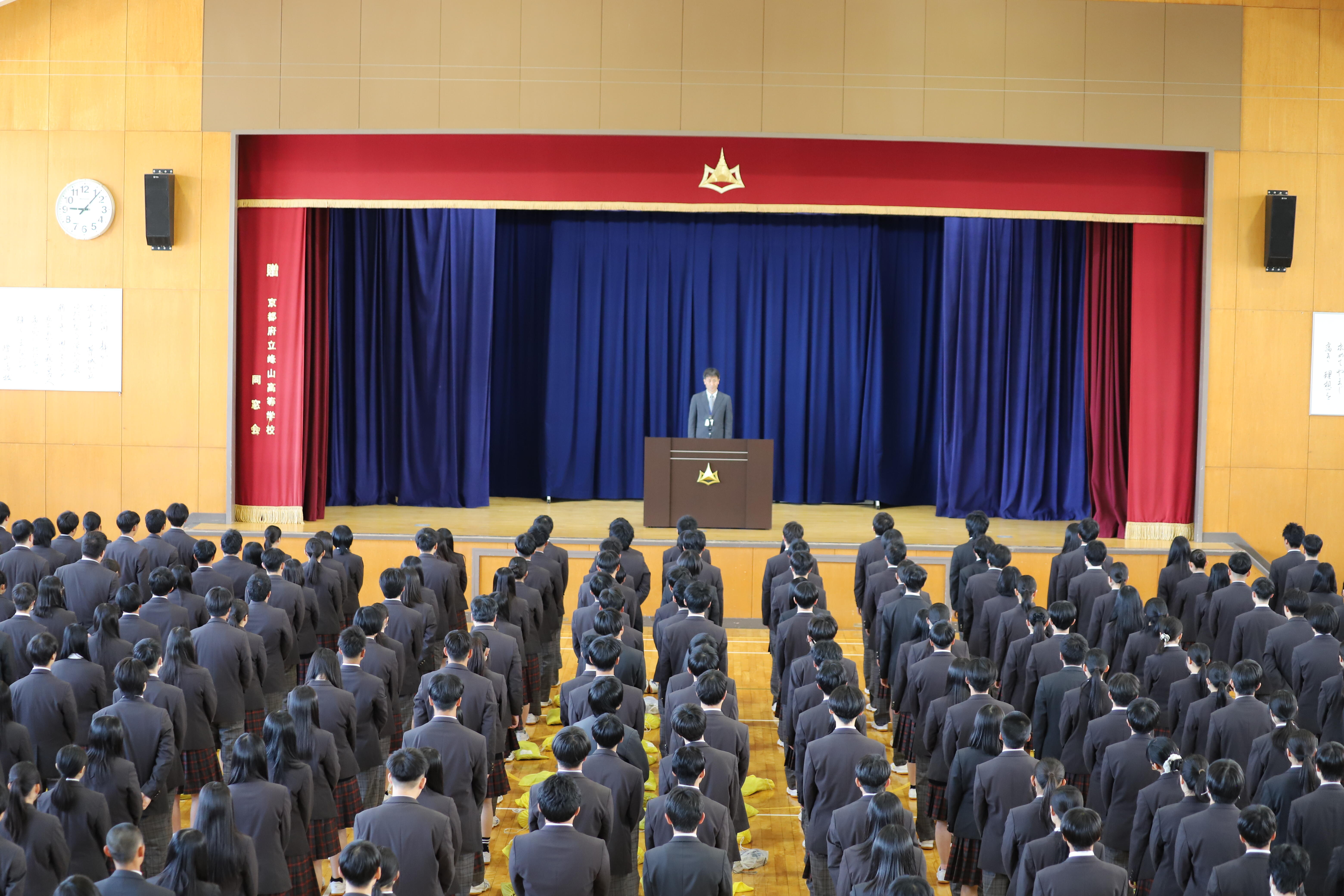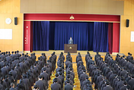校長式辞では、本校の校是とスクールポリシーについて触れ、問いを立て深く真理を追究する力、変化をおそれず挑戦を続ける力、広く人と交わり、協調してしなやかに生き抜く力を高校生活で身に付けるよう訴えました。