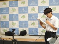 9月12日(金)に生徒総会を行いました。当初は体育館で実施する予定でしたが、悪天候のため、急遽オンラインで行うことになりました。生徒会役員、学級委員長、専門委員会の部長が中会議室でカメラに向かって発表をしました。生徒たちは、急な変更にも関わらず、混乱もなく大変スムーズに落ち着いて発表しており、感心しました。