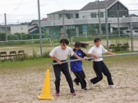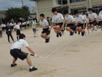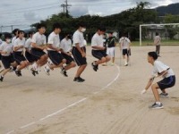 大縄練習や台風の目の練習も行いました。1年生がうまくいくように3年生が優しくアドバイスする姿が見られました。始めたばかりなのでうまくいかないことも多々ありますが、アドバイスを活かしながら、チームや学級で作戦をたて練習を進めていきます。