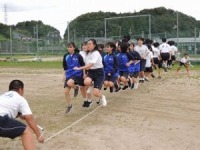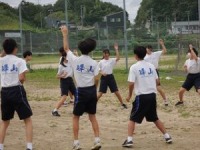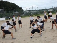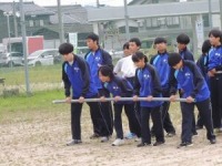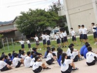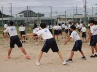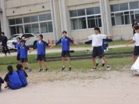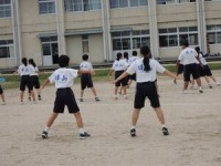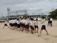 10月2日(木)予定の体育祭にむけ、練習がスタートしました。赤色、青色、黄色の3つのブロックに分かれ、演技の部、競技の部、そして総合の部の優勝を目指します。今年度の演技は、「ソーラン節」と自由演技(音楽も振り付けも自作)の2部形式で競い合います。まずは基本の演技を3年生が中心になって教えました。