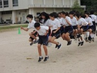 大縄跳びは、1分間を2回跳び、跳んだ数の合計で競います。
