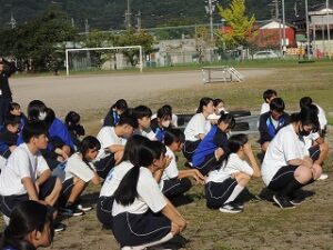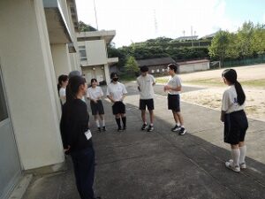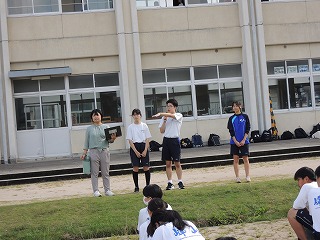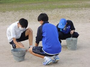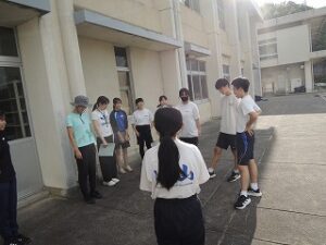 作業終了後、バケツの片付け等を行ったあと、リーダーたちが今日の振り返りを行いました。任務係という縁の下の力持ちの存在の大きさを感じました。