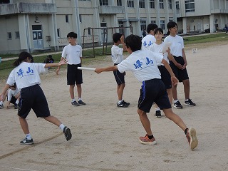 ようやく天気に恵まれ、体育祭前日練習を行うことができました。全校リハーサルを終えた後は、ブロック練習をしました。各ブロック、これまで十分にできなかった競技練習をしたり、演技の入退場や立ち位置の確認やソーラン節と自由演技を続けて行ったり、掛け声の練習をしたりと最後の練習に打ち込みました。長時間の練習ではありましたが、どのブロックも最終練習とあって、気合が入っていました。