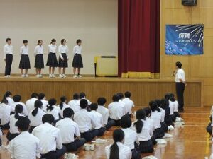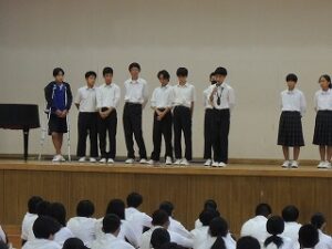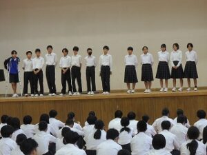 10月18日(土)に峰山球場で実施される丹後ブロック駅伝大会に向け壮行会を実施しました。駅伝部の生徒たちは、夏休みから約3か月間、練習を積み重ねてきました。これまでの練習の成果を思う存分発揮し、悔いのない走りを見せてくれることを楽しみにしています。