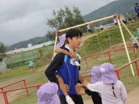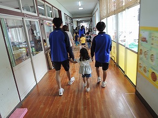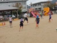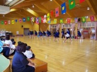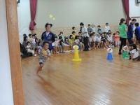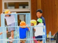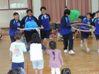 ゆうかり子ども園では週末に控えた運動会の練習を一緒にしました。リレーをした5歳児は中学生に負けまいと真剣に走りました。