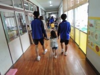 中学生のお兄さん、お姉さんが来てくれてとっても嬉しい子どもたち。自分からどんどん距離を縮めていきます。
