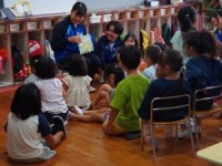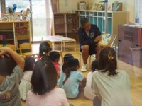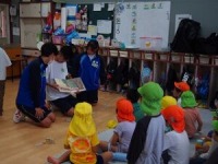 練習の成果を発揮した読み聞かせ。園児たちはとても嬉しそうに見入っていました。