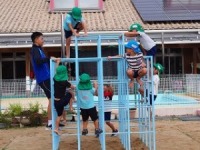 園庭で園児たちとしっぽとりをしたり、遊具を使ったりして遊びました。