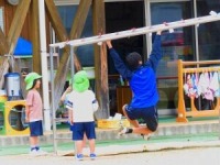 中学生にとっては低い雲梯でしたが、頑張って見本を見せました。