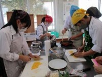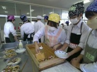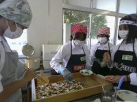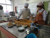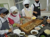 11月5,6,7日の3日間、食生活改善推進委員の方々にお世話になり、2年生が丹後のばら寿司体験を行いました。鯖のそぼろを作ったり、錦糸卵を焼いたり、ゴボウのささがきをしたりと普段しない体験でしたが、みんな意欲的に取り組んでいました。自分たちで松ぶたにきれいに盛り付けたばら寿司は、見た目も味も抜群で最後までしっかりと食べきりました。