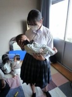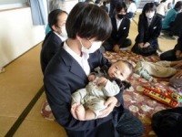 11月6日、3年生が家庭科の授業で「赤ちゃんとふれあい体験」を行いました。峰山地域家庭教育支援チーム「のびのび倶楽部みねやま」の方々にお世話になり、京丹後市の取組について理解したり、赤ちゃんの心身の発達や生活、親の役割等について学んだりしました。若干緊張気味だった生徒たちでしたが、屈託のない赤ちゃんたちに接する中で表情が和らいでいきました。赤ちゃんを連れてきてくださったたくさんのお父さん、お母さん方のおかげで大変貴重な経験をすることができました。ありがとうございました。
