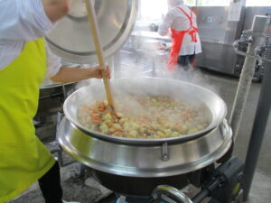 今日は大根をたっぷり使った豚肉と大根の旨煮も作りました。大根の煮物は意外にも生徒達に人気なのです。こちらもしっかりと食べていました。