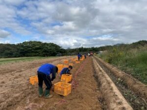 先月の職場体験でさつまいも堀りを手伝っている様子です。この時掘ったさつまいもも、今日のさつまいもの中に入っているかもしれませんね!