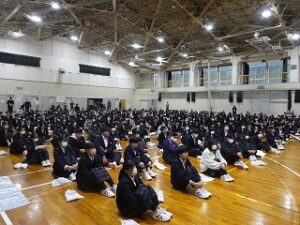 終業式の校長式辞では、12月から試験的にGeminiを導入してきた中で、様々な素晴らしい取組を進めてきたこと、冬休みには家庭で効果的に活用してほしいこと、そして、広いフィールドに身を置き自分の可能性を信じ頑張ってほしいと語られました。最後に、冬休み中に困ったことやピンチになったときは、一人で抱え込まず必ず学校や様々な相談窓口に相談してほしいと伝えられました。生徒たちは集中して聞いていました。