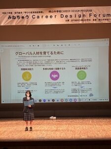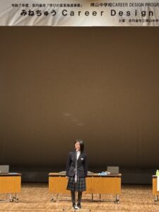 「峰山中学校CAREER DESIGN PROGRAM 2025」を締めくくる「みねちゅう Career Design Forum」を1月28日午後、丹後文化会館にて開催しました。