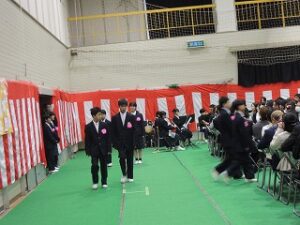 新入生の入場と呼名の様子