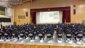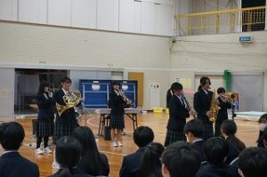 学校の様子4月13日に新入生歓迎オリエンテーションを開催しました。生徒会本部からは、本年度のスローガンや生徒会組織等についての提案、各部活動からは実演を交えた部活紹介がありました。1年生代表からは、新生活に向けた決意が堂々と述べられました。