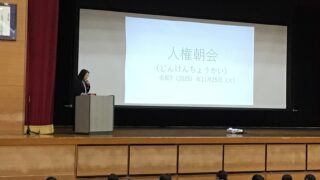11月25日(火)人権集会を行いました。11月25日から12月4日まで、美濃山小学校の人権週間を行います。校長から人権とは「みんながしあわせなきもちで学校生活を送れる週間にしよう」とはなしがありました。