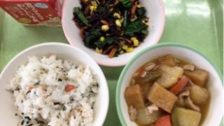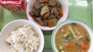 <今日の献立> 3月2日(月) ・発芽玄米入りごはん ・筑前煮 ・切干大根のみそ汁 ・牛乳 今日は、かみかみ献立です。ごはんには、発芽玄米が入っています。筑前煮には、 ごぼう、たけのこ、にんじんなどの根菜類が入っていました。み...