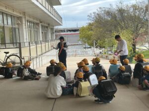 4月13日(月)警察の交通課の方が来校し、1年生に黄傘を贈呈してくれました。