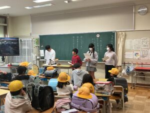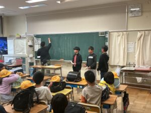それぞれの地域に分かれて、1年生は班長の上級生がクラスに迎えにきて自分の班の教室まで連れて行ってくれました。それぞれの班で自己紹介をした後、登校のルールや並び方を確認しました。