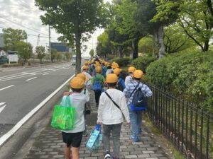 2年生は、1・2時間目です。8:45には学校を出て、歩いてgunzeに到着しました。さすが2回目、列も乱すことなくしっかりと歩いていけました。